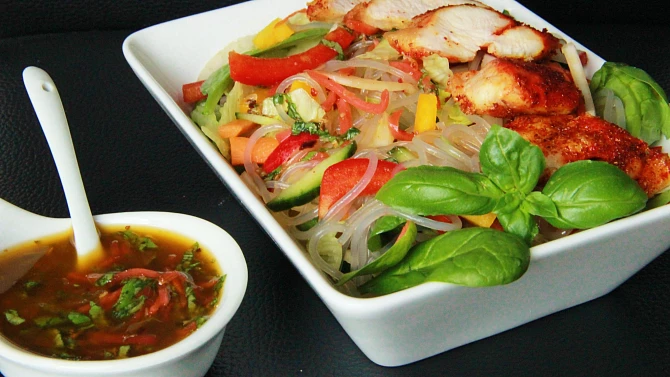 Asijský salát se skleněnými nudlemi
