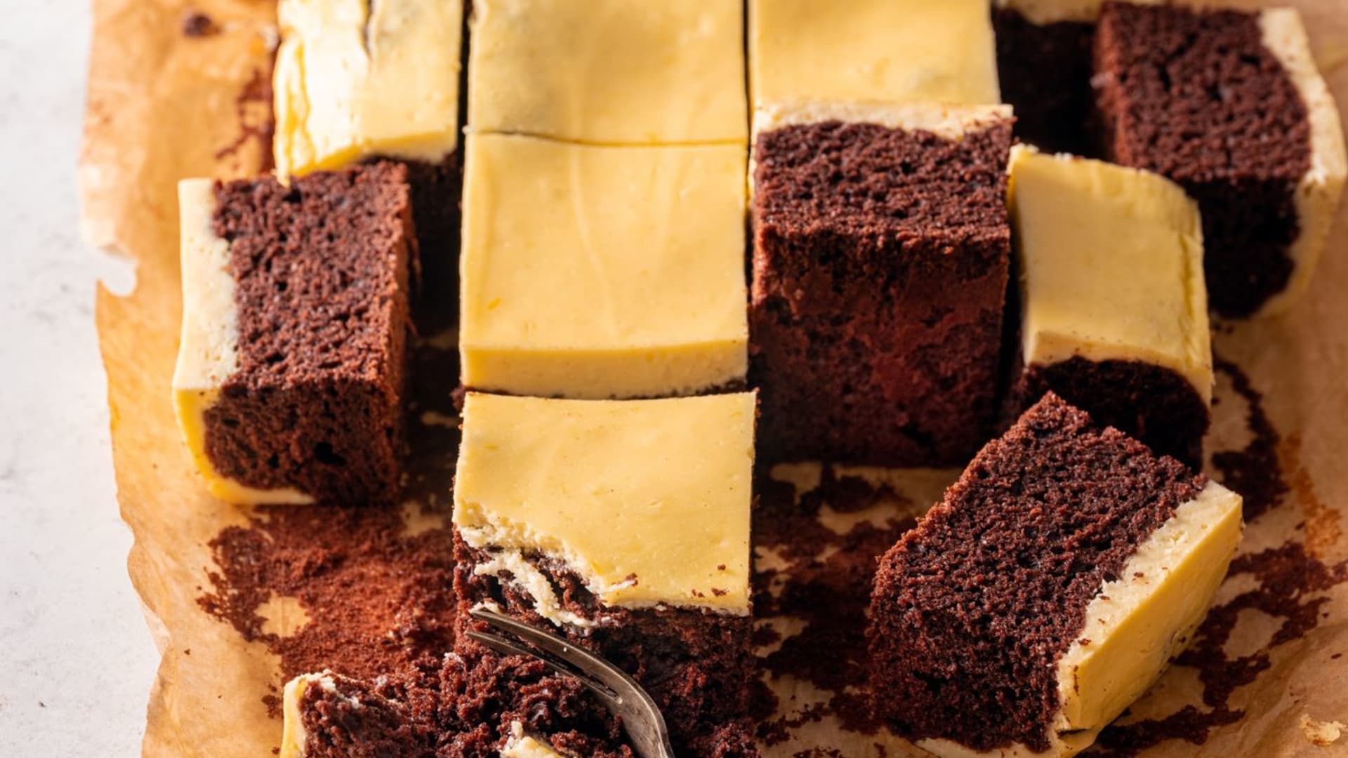 Svou chutí trochu připomíná americký ikonický dezert, svým vzhledem spíše litý koláč na plech. Překvapí nevšedním spojením kakaového korpusu a tvarohové vrstvy a snadnou přípravou. Je to ideální společník odpoledních svačin s hrnkem silného černého čaje nebo bílé kávy.