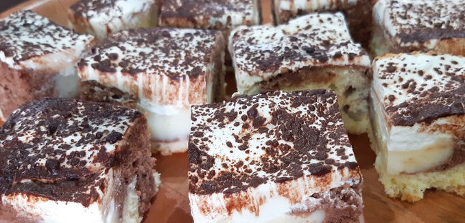 Fantastický, u nás asi nejoblíbenější dezert, který připravuji téměř každý víkend. Je velmi šťavnatý a velmi chutný. Už jsem ho připravovala s různými příchutěmi co se týče pudinku. I vanilkový, i banánový, i jahodový nebo malinový, ale nejvíce se osvědčila stará dobrá klasika s vanilkovým pudinkem. Smetanu na vrch už nesladím, ale kdo má raději sladší dezerty, doporučuji přidat i vanilkový cukr.