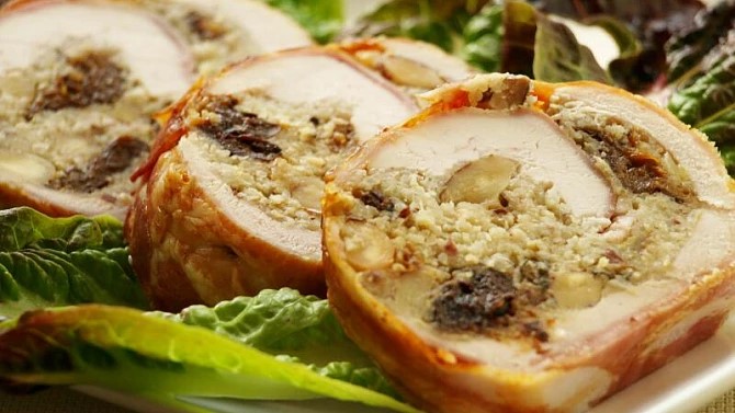 Kuře a dýně po myslivecku s houbami a rajčaty podle Jamieho Olivera