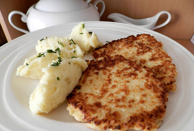 Květákové placičky s bramborovou smetanovou kaší