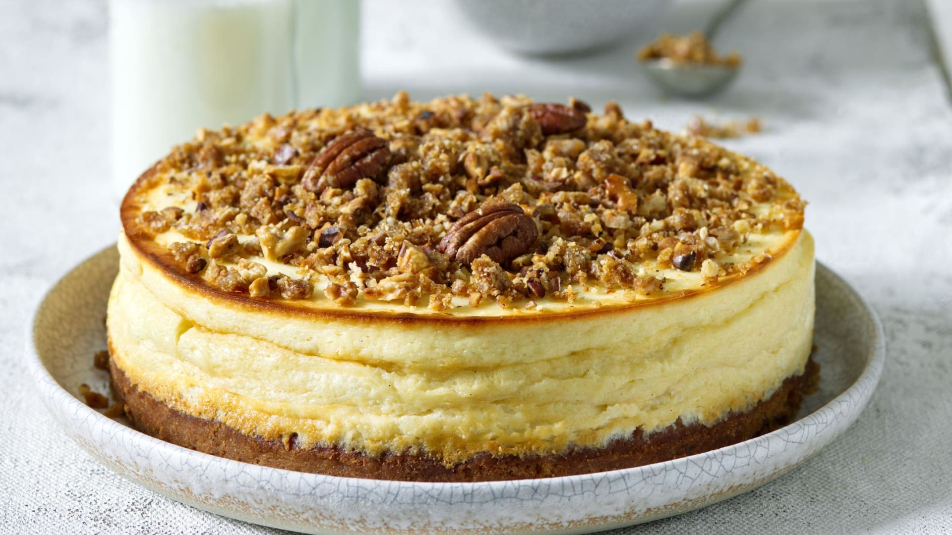 Podzimní verze (s jemně perníkovou vůní a šťavnatými karotkami) svěžího tvarohového koláče v americkém stylu využívá hned dvou oříškových zástupců – šťavnaté mandle v těstě a křupavé tečky v podání bratranců vlašských ořechů, tedy ořechů pekanových. Tenhle dezert je vlastně křížencem mezi cheesecakem a mrkvovým koláčem – je velmi svěží, šťavnatý, zdravý, ale především mimořádně dobrý!