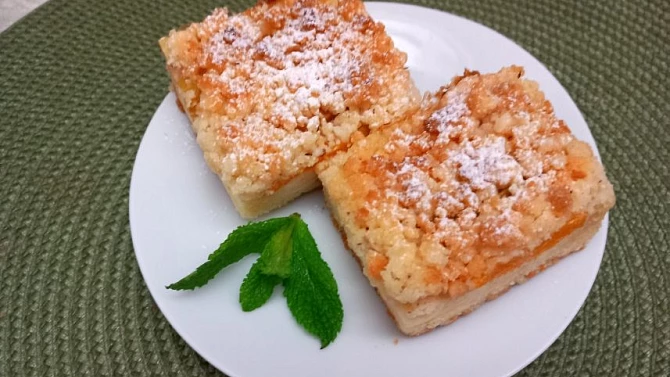 Pokud stále nevíte, co upéct k nedělní kávě, tento drobenkový koláč je ta správná volba. S drobenkou vám pomůže robot a pudink je uvařený během chvilky. Koláč je plný pudinkového krému s broskvemi a drobenka s oříšky křupne v každém soustu.