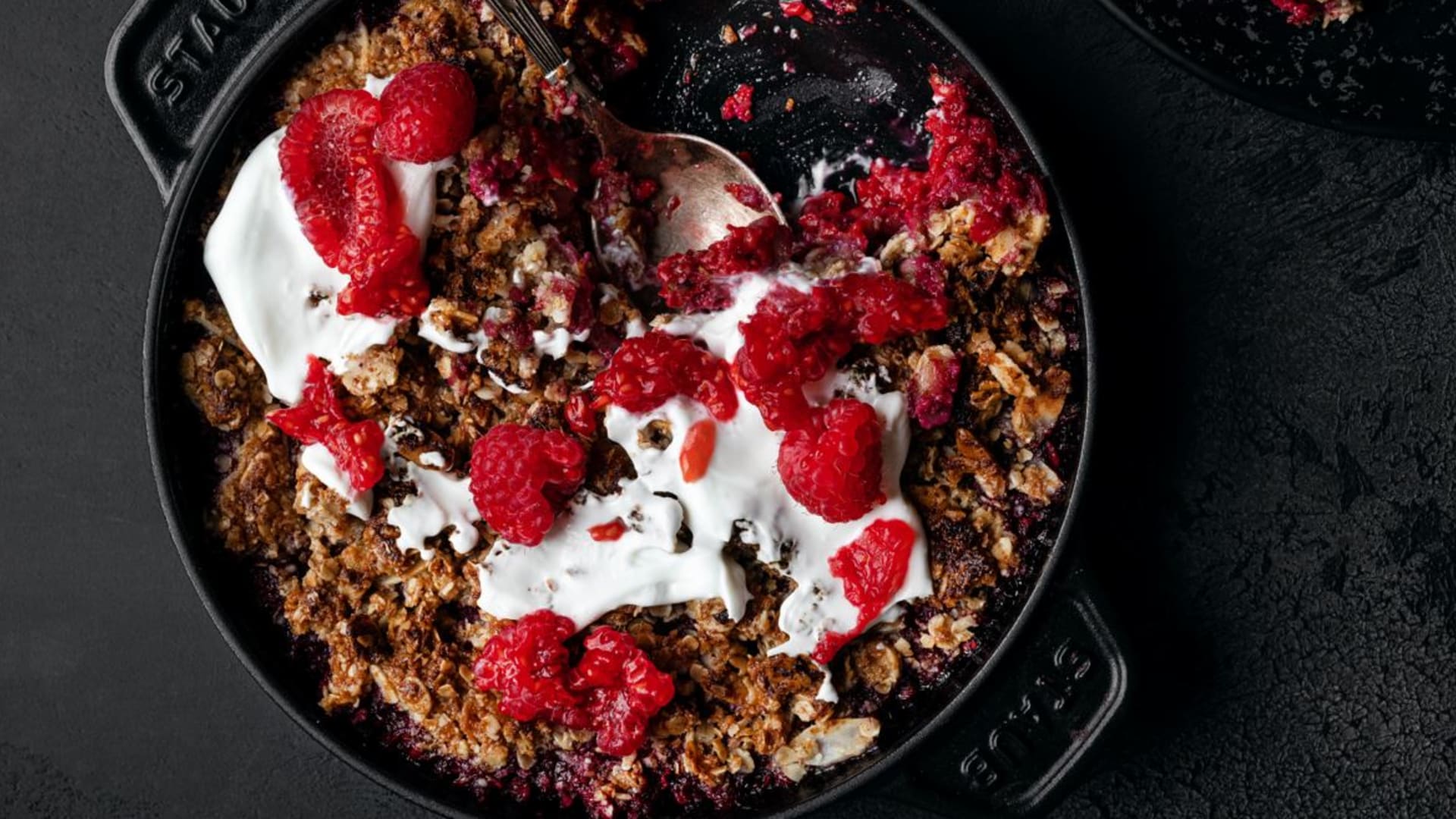 Crumble znamená anglicky rozdrobit, rozdrolit a přesně to je podstatou tohoto dezertu – zapečenému ovoci dodá drobenka žádanou křupavost a sladkost. Spojení mandlí a malin působí elegantně a lehce, skvělý dezert nejen do plavkové sezony.