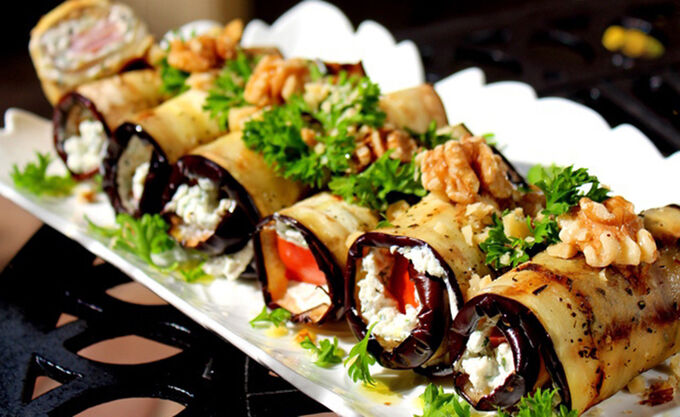 Lehký oběd nebo chutná večeře. Zapečený lilek se sýrovou náplní a ořechy. Výborná pochoutka.