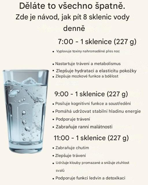 👉 Pokud máte pocit, že „to děláte špatně“, většinou chybí systém a drobná taktika. Ne síla vůle. Struktura dne, připomínky a malé rituály vás dovede k 8 sklenicím vody přirozeně – bez přemáhání a bez toho, abyste si kazili radost z jídla či dne. Přínosy pravidelného pití vody během dne Energie: Lepší soustředění, méně únavy … Read more