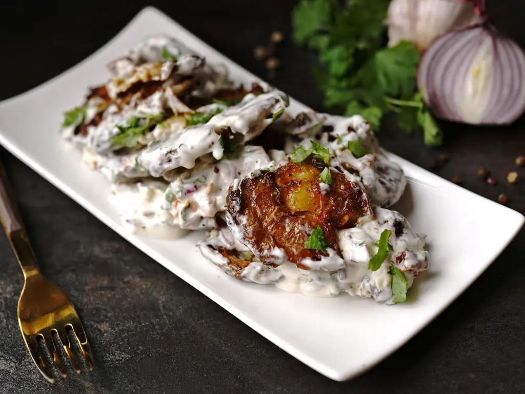 Bramborový salát nemusí mít zdaleka jen podobu tradičního s kořenovou zeleninou a majonézou. Vyzkoušejte tento s bramborami z trouby, které se dokonale do křupava upečou, když je rozmáčknete.