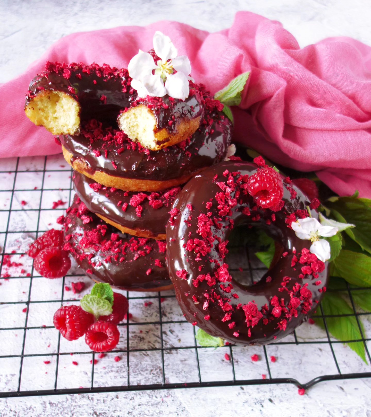 Šlehačkové donuty se úplně rozplývají v puse. Jsou jemné a vláčné. Doporučujeme je podávat s čokoládovou polevou a malinami.