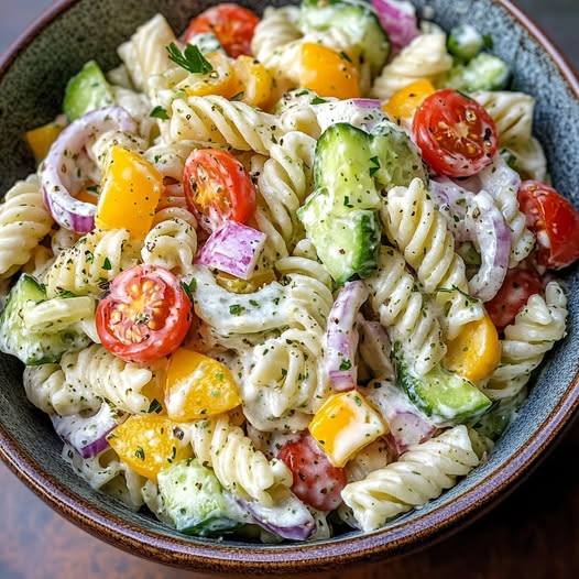 Pro přípravu lahodného těstovinového salátu s jogurtovým dresinkem potřebujete výběr čerstvých a chutných surovin.